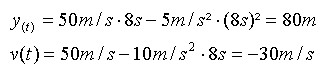 Es importante interpretar este resultado. Según nuestros cálculos el cuerpo estará a una altura de 80 m en dos ocasiones: a los 2 seg de haber sido arrojado hacia arriba y l uego a los 8 seg. Ocurre que en este lapso de tiempo el cuerpo alcanza la altura máxima pasando por los 80 m de altura al subir y luego regresando al bajar. Notemos que en la primer situación el móvil tiene velocidad positiva (lo cual de acuerdo al sistema referencial elegido indica que está ascendiendo) y en la segunda pasada su velocidad es negativa.