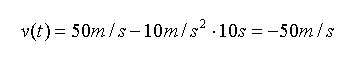 g) Sabemos que se trata de un MRUV con aceleración negativa y velocidad inicial positiva. Esta se anula a los 5 seg en donde el cuerpo alcanza su altura máxima y 5 seg después toca el suelo con una velocidad de –50 m/s: