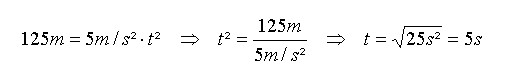 c) Si consideramos que el cuerpo ha llegado al piso entonces conocemos la distancia que ha recorrido (125 m). Si este valor lo reemplazamos en y(t) podemos despejar el tiempo que ha tardado en recorrerlos: