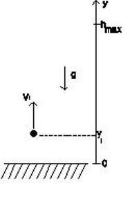 Si arrojamos un objeto hacia arriba vemos que su rapidez disminuye hasta alcanzar su altura máxima, instante en el cual el cuerpo se detiene y comenzará a caer aumentando su rapidez. En este caso y en correspondencia con la figura conviene adoptar como referencia un eje vertical que también llamaremos “y” con origen en el suelo y sentido positivo hacia arriba. La aceleración gravitatoria actuante hacia abajo, tendrá signo negativo de acuerdo a la referencia elegida, diminuyendo la velocidad del cuerpo desde el valor inicial hasta anularla en la altura máxima. A partir de allí la velocidad continúa disminuyendo tomando valores negativos porque el cuerpo estará bajando (recordemos que nuestro sistema de referencia apunta siempre hacia arriba definiendo ese sentido como positivo). Las funciones horarias correspondientes serán entonces: