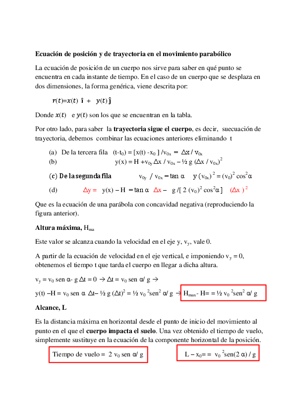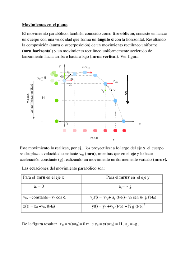 Tiro oblicuo - conceptos teóricos