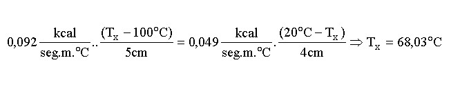 b) Agua (l=1,39.10-4 kcal/seg.m.°C)
