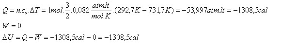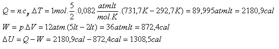 Recordemos además que para un gas monoatómico cv=3/2R y cp=5/2R (También considere que para pasar de atm.lt a caloría debe multiplicar por 24,23)