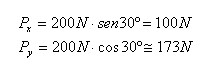 En primer lugar vamos a descomponer el peso (P = 20 kg.10 m/s² = 200 N) en sus componentes paralela y perpendicular al plano: