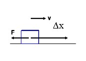 Si le aplicamos una fuerza paralela al plano que lo empuje en el sentido contrario al que se desplaza, se moverá más lentamente y obviamente su energía cinética disminuirá. El ángulo es de 180 º y como el cos 180º = - 1 el trabajo será negativo, o sea, L = - F. ∆x