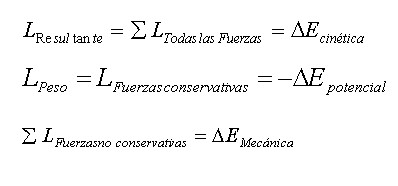 Podemos generalizar la relación entre trabajo y energía (cinética, potencial o mecánica) mediante las siguientes expresiones: