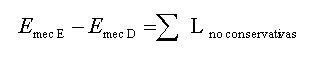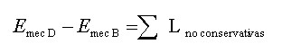 Finalmente veamos cuanta energía mecánica gana o pierde el cuerpo entre D y E (o sea cuanto vale el trabajo de las fuerzas no conservativas).