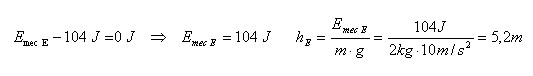 Vale decir que el cuerpo no gana ni pierde energía mecánica al ir de D a E, resultando obvio que la energía mecánica en E es 104 J. Luego podemos calcular hE
