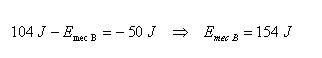 Sabemos que la energía mecánica en B es potencial y cinética (25 J de energía cinética ya que la velocidad en ese punto es de 5 m/s) y del cálculo anterior sabemos que la energía mecánica en D es 104 J
