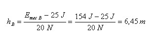 Sabiendo que la energía mecánica en B es 154 J reemplazando en (I) podemos despejar hB.
