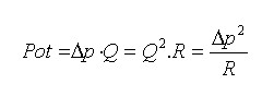 Así como cuando un cuerpo se mueve por una superficie horizontal con rozamiento, para mantenerlo con velocidad constante necesitamos ejercerle una fuerza de igual intensidad y de sentido contrario, es decir, necesitamos entregarle la misma cantidad de energía que la que pierde por efecto del rozamiento, para un fluido real que circula por un circuito cerrado debo entregarle energía para mantener el flujo por el conducto, para que no se “pare” debo entregarle la misma potencia que se disipa, por ejemplo con una bomba (el corazón en el caso del sistema circulatorio). La potencia disipada podemos calcularla como la fuerza por la velocidad, y recordando que la fuerza es la presión por la sección del conducto por la que circula el fluido, obtenemos: