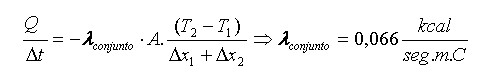 c) Finalmente podemos calcular el coeficiente de conductividad del conjunto considerándolo como un tabique único: