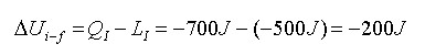 Primero podemos calcular la variación de energía interna cuando pasa del estado inicial y final para la primera evolución (que llamaremos camino I), ya que conocemos el trabajo y el calor intercambiados, recibe 500J de trabajo (LI = -500J) y libera 700J de calor (QI = -700J)