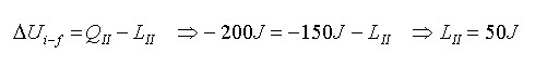 Como la energía interna es una función de estado, para cualquier evolución entre los mismos estados i y f su variación es la misma (recordemos que esto es válido siempre que los estados de “partida” o “iniciales” sean iguales para todas las transformaciones, así también como los estados de “llegada” o “finales”), en particular para la segunda evolución (camino II) la variación también es de –200J, y como además nos dan como dato el calor intercambiado por este camino (QII = -150J), podemos calcular el trabajo que realiza el sistema: