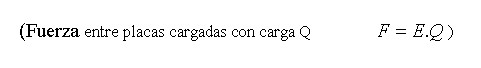 La existencia de este campo permite que sucedan fenómenos eléctricos. Por ejemplo, si queremos trasladar una carga puntual de una placa a otra el módulo de la fuerza eléctrica y de su trabajo serán: