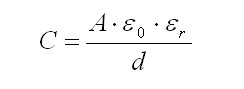 De los muchos tipos de capacitores el más sencillo consta de dos placas planas de un material conductor, paralelas, de área A, separadas por una pequeña distancia d. Con el propósito de aumentar la carga acumulada en las placas del capacitor se rellena entre las placas con un material aislante de constante dieléctrica grande (cerámica, mica, papel, etc).