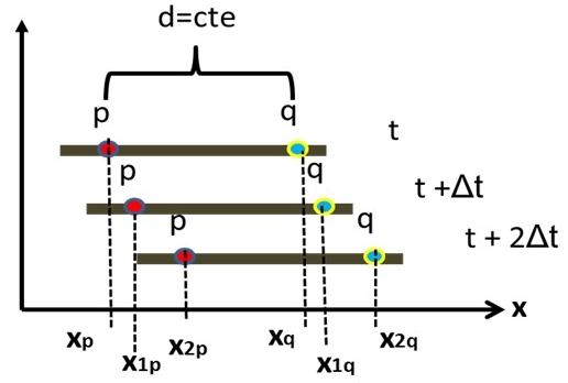 (x1p-xp ) / Δt = (x1q-xq ) / Δt --> vp media = vq media --> lím (Δt->0) --> vp = vq